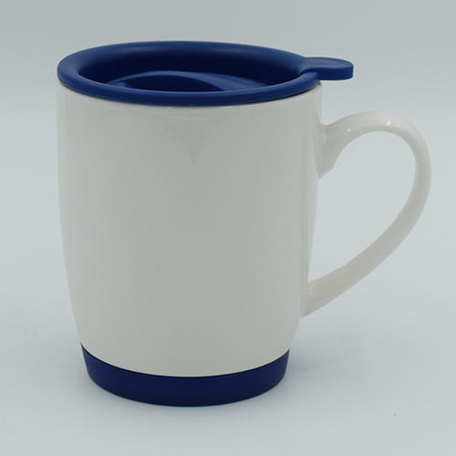 White Bone China Mug with Dark Blue Lid and Base